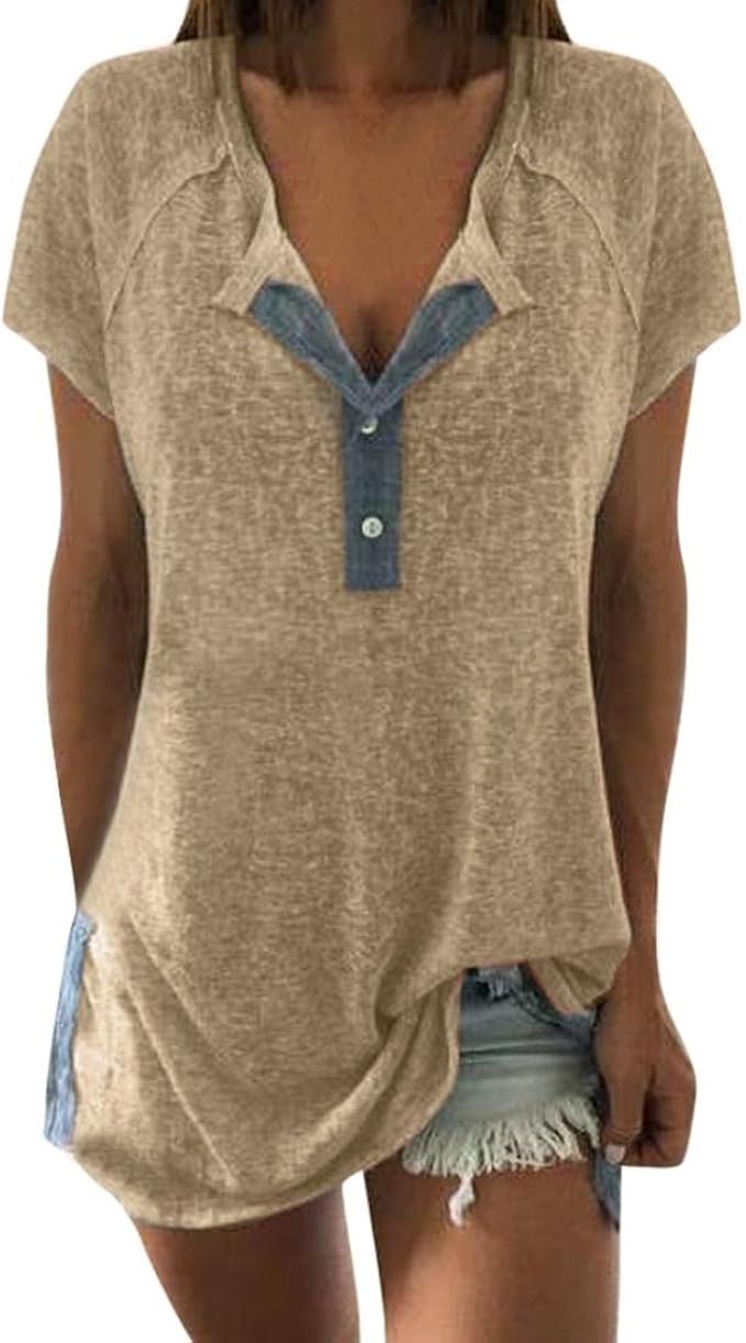 T Shirts Damen Sommer Shirt Kurzarm Oberteile Baumwoll Bluse Tops Hemd Ladies Basic Shirts Casual Longshirts Rundhalsshirts Weisses Tunikashirts Sweatshirt Mit Knopf Amazon De Bekleidung