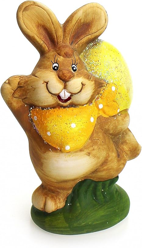 Amazon De Tempelwelt Deko Figur Osterhase Hase Mit Ei 13 5 Cm Gross Aus Polystein Braun Grun Gelb