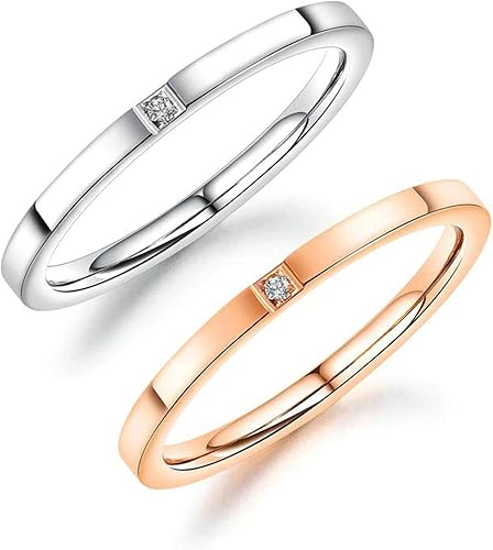 Bishilin Titanring Fur Frauen Zirkonia Schmal Rund 2 Mm Vintage Damen Ring Silber Rosegold Freundschaftsring Amazon De Schmuck