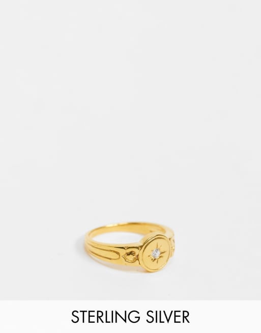 Reclaimed Vintage Schmaler Vergoldeter Ring Aus Sterlingsilber Mit Sternverzierung Evesham Nj