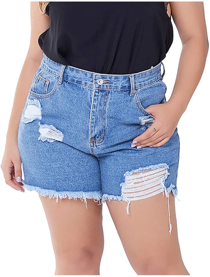 Damen Grosse Grossen Jeans Shorts Destroy Boyfriend Look Sweatshorts Kurze Hose Frauen Essentials Sommer Bermuda Hoppants Amazon De Bekleidung