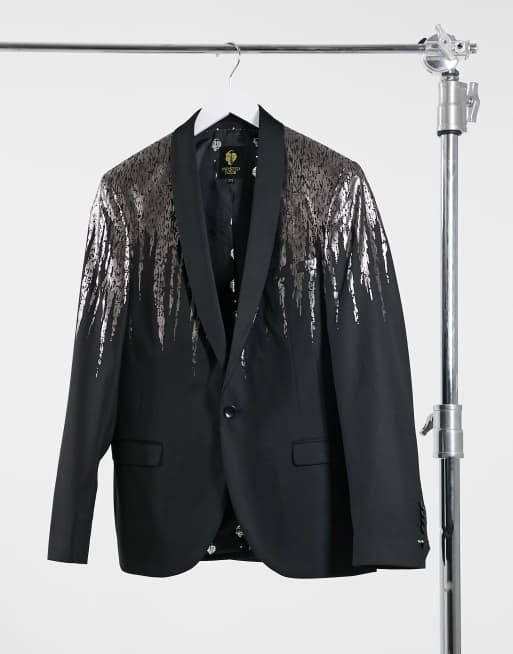 Twisted Tailor Schwarzer Blazer Mit Silberfarbenem Drip Muster Evesham Nj