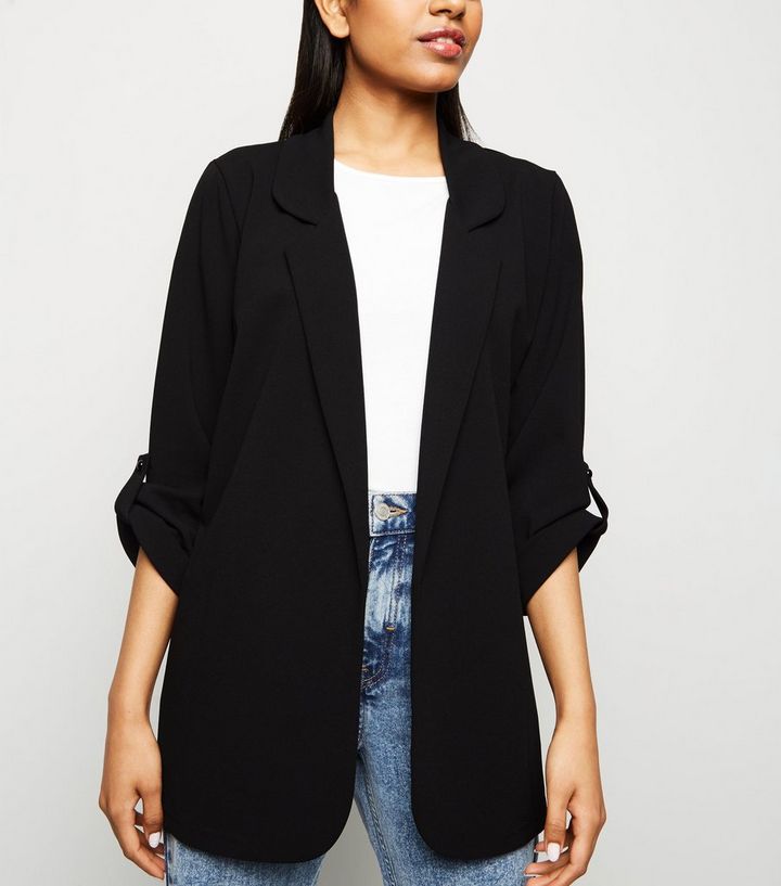 Petite Black Longline Blazer New Look