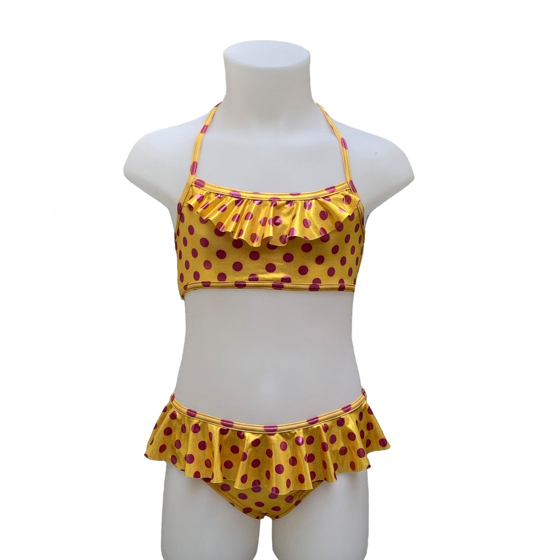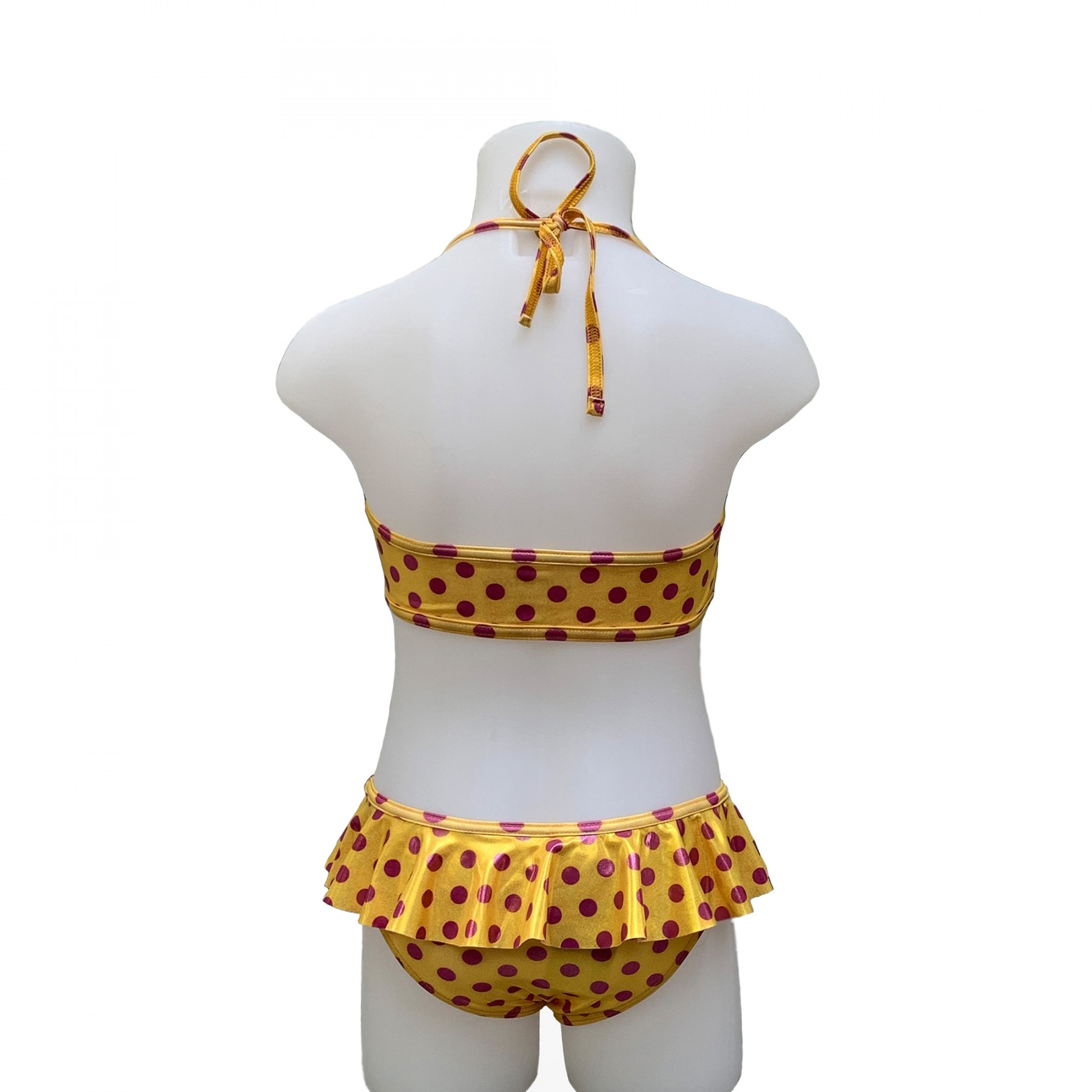 Shiny Yellow Frill Bandeau Bikini With Fuchsia Dots Liebing Beachwear