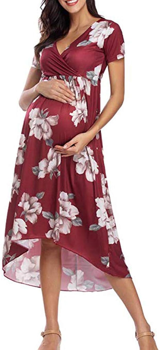 Muamaly Umstandskleid Kleid Schwangerschaft V Ausschnitt Kurzarm Umstandskleider Stillkleid Festlich Sommerkleid Damen Amazon De Bekleidung
