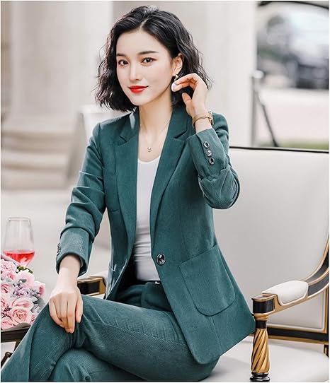 Wslcn Damen Elegant Hosenanzuge Cord Bugelfreier Blazer Sakko Anzug Jacke Business Sets Amazon De Bekleidung