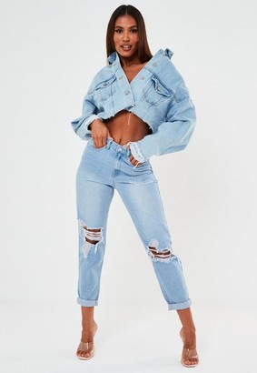 Missguided Extreme Rip Mom Jeans Bleached Blue Ripped Mom Jeans Extreme Ripped Jeans Womens Jeans Skinny