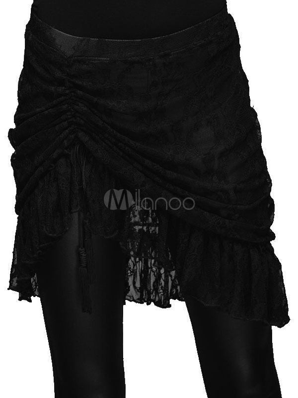Karneval Gothic Kostum Frauen Schwarze Spitze Ruschen Kurze Rocke Milanoo Com