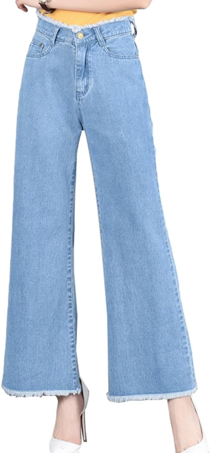 Tookang Damen Ubergrosse Weites Bein Gerade Ausgestellte Jeans Elegante Beilaufige Denim Kick Flare Hose Ohne Dehnung Amazon De Bekleidung