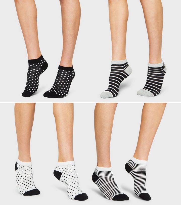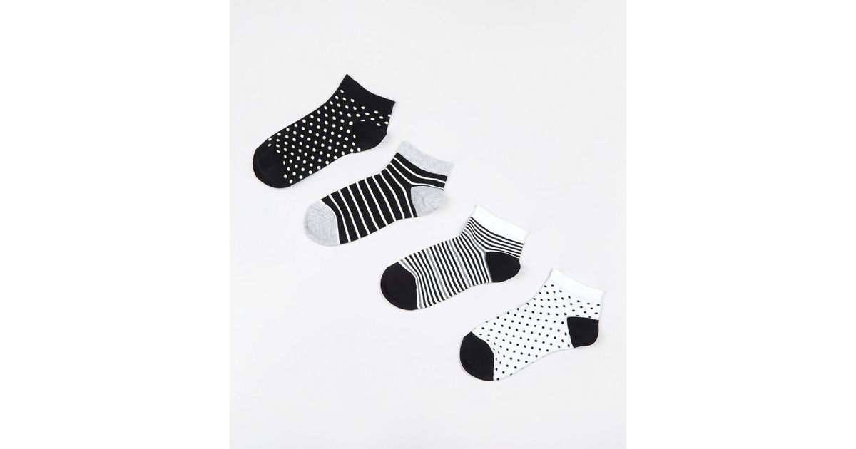 Weisse Sneaker Socken Mit Punkten Und Streifen 4er Pack New Look