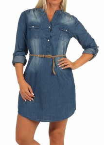 Damen Kleid Jeanskleid Hemdkleid Shirtkleid Minikleid Langarm Denim Hailys Patty Ebay