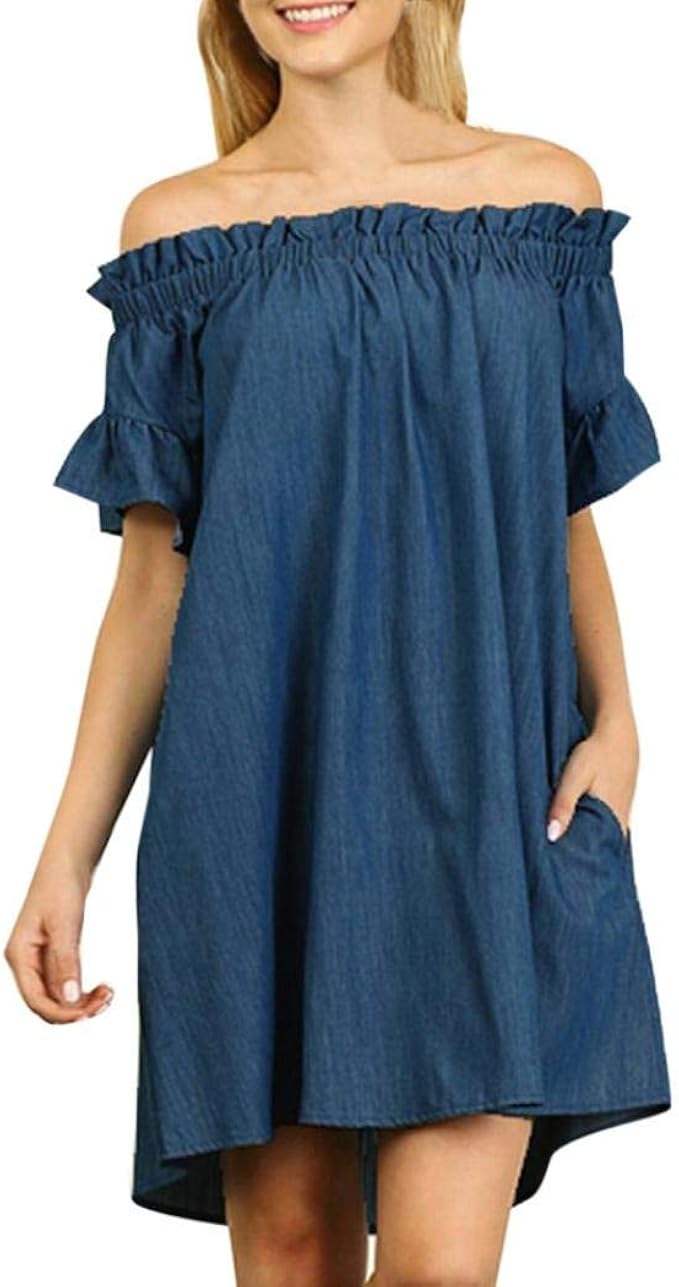 Schulterfrei Hemdkleid Damen Sommer Jeanskleid Casual Denim T Shirt Bequeme Grossen Kleid Blusekleid Jeanstasche Cocktail Kleid Kleidung Vintage Etuikleid Festlich Freizeit Elegant Amazon De Bekleidung