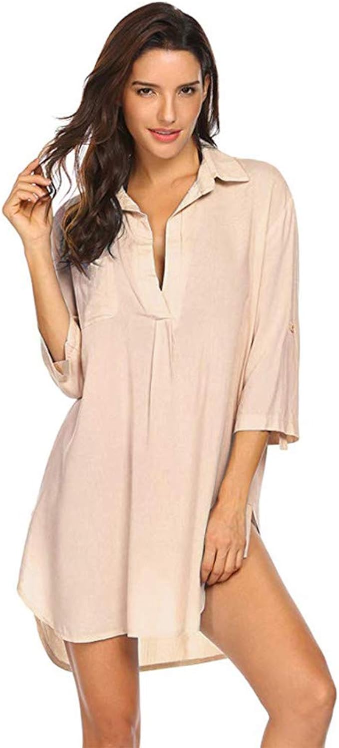 Hemdkleid Damen Ifoundyou Sommer Mode Strandkleider Frauen Kurze Beachwear Einfarbig Strand T Shirt V Ausschnitt Elegante Kleider 3 4 Armel Badekleidung Amazon De Bekleidung