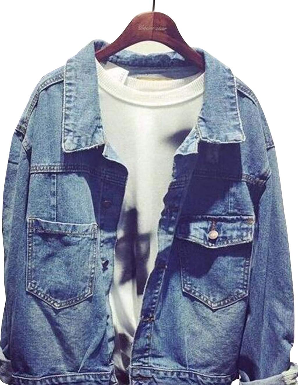 Hx Fashion Damen Jeansjacke Oversize Madchen Mit Patches Zerissen Vintage Elegant Denim Jacken Herbst Winter Hellblau Langarm Revers Ripped Locher Boyfriend Casual Outwear Jacket Mantel Amazon De Bekleidung