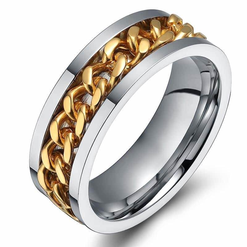 Chainspro Edelstahl Ketten Style Ring Fur Herren Herren Drehbar Kette Gothic Punk Biker Manner Biker Band Ring In Silber Gold Schwarz Rock Retro Ring Mit Motorradfahrer Grooved Herren Ring Amazon De Schmuck