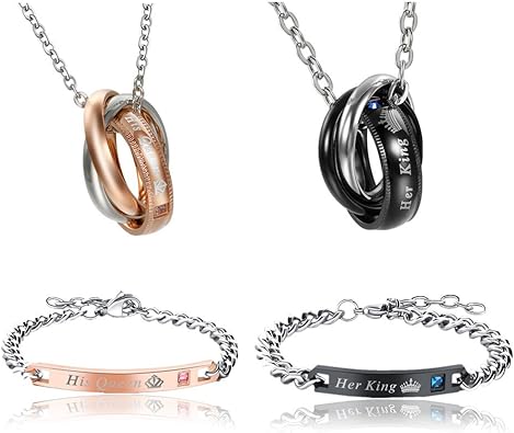 Flongo Queen King Valentine Anhanger Halskette Armband Set Herren Damen Ehering Ring Ihn Konig Seine Konigin Eternal Love Verlobungsring Anhanger Halskette Armband Amazon De Schmuck