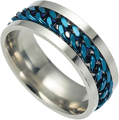 Fliyeong Titan Edelstahl Ring Drehbare Kette Ring Drehbare Spinner Ring Ehering Fur Manner Geburtstag Engagement Vater Grosse 10 Blau Amazon De Schmuck