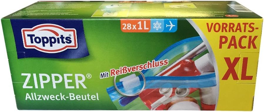 Toppits Zipper Allzweck Beutel Xl Vorratspack 28x1l Flugzeugbeutel Amazon De Kuche Haushalt