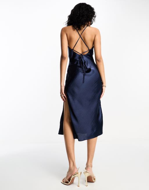Asos Design Cami Midi Slip Dress In High Shine Satin With Lace Up Back Asos Slip Dress Slip Bridesmaids Dresses Satin Slip Dress Outfit
