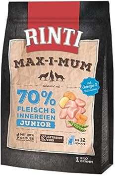 Rinti Nassfutter Rinti Feinest;. Rinti Maximum Das Trockenfutter mit dem Frische Plus Das Trockenfutter Maximum von Rinti wird mit 70% Fleisch und frischen Innereien , 30% Gemüse und 0% Getreide zubereitet Mit 90% frisch im Fleischanteil, wird der natürliche Fleischgeschmack gefördert und die Nahrungsverwertung unterstützt Es hat ein ausgewogenes Protein/FettVerhältnis für eine schonende Verdauung. Rinti is therefore made in most varieties without carbohydrates, grainfree or glutenfree and has a high meat content If there is any grain (eg the rice contained in Rinti Sensible Chicken & Rice), this is clearly marked in the declaration.