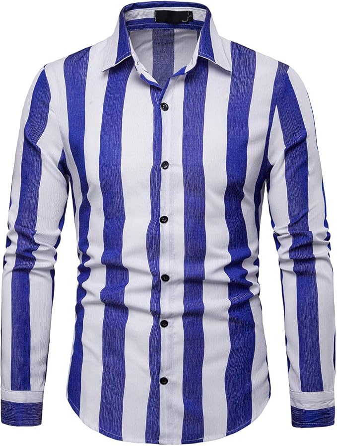 Keepline Herren Hemd Mit Nadelstreifen Baumwolle Langarmelig Lassig Party Hemd Blau X Gross Amazon De Bekleidung