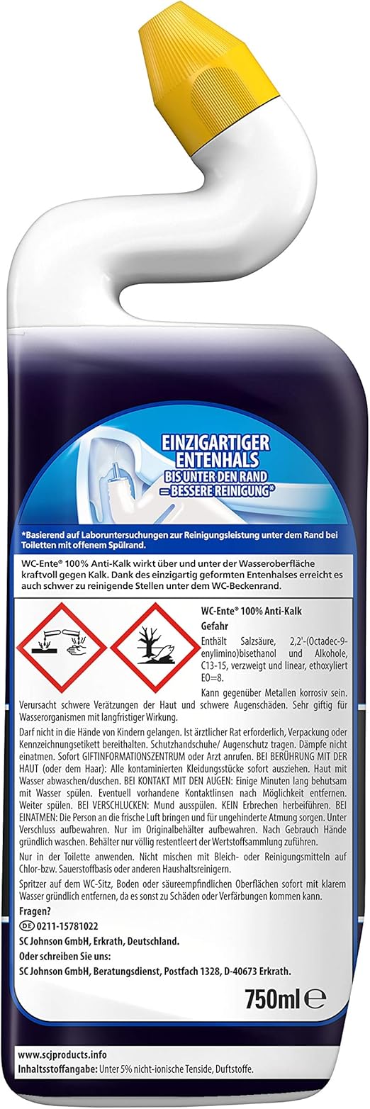 Wc Ente 100 Anti Kalk Flussiger Wc Reiniger Toilettenreiniger 1er Pack 1 X 750 Ml Amazon De Drogerie Korperpflege