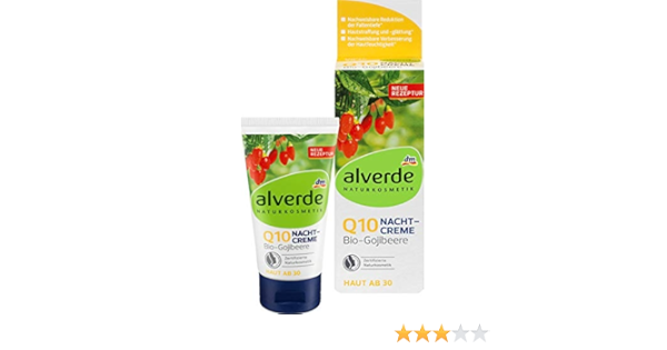 Alverde alverde BachblütenSerie Mit der neuen BachblütenSerie setzt alverde NATURKOSMETIK einmal mehr auf die Kraft der Natur Ab Ende Juni ergänzen die escreme Vertrauen, die Nachtcreme Regeneration sowie die Augencreme Frische mit Bachblüten den Gesichtspflegebereich für normale bis trockene Haut Jedes Produkt setzt sich. Alverde NATURKOSMETIK Q10 Nachtcreme BioGojibeere Für jede Haut ab 30 Jahren, 50 ml* Die alverde NATURKOSMETIK Q10 Nachtcreme BioGojibeere unterstützt die hauteigene Die Rezeptur mit natürlichem Coenzym Q10 sowie Hyaluronsäure und Vitamin E sorgt. Hilfreiche Tipps und Infos zum Thema ,nachtcreme,Haupflege,Kosmetik,Cremes,Frauen,Feuchtigkeitscremes,nachtcreme bei 'Noch Fragen?', der Wissenscommunity von sternde Hier können Sie Fragen.