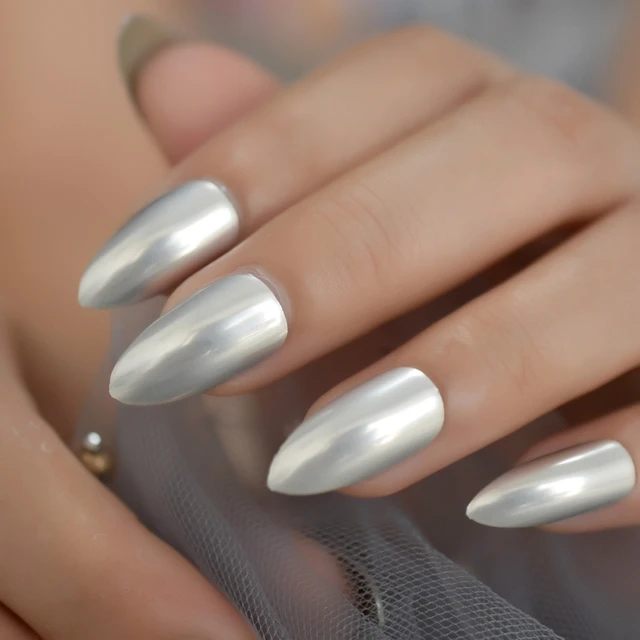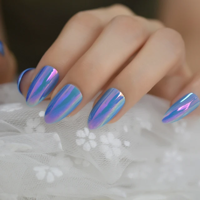 Reflektierende Spiegel Licht Weichen Rosa Metall Uberzug Falsche Franzosisch Acryl Nagel Tipps Metallic Platz Gefalschte Nagel Ohne Nagel Kleber Falsche Nagel Aliexpress