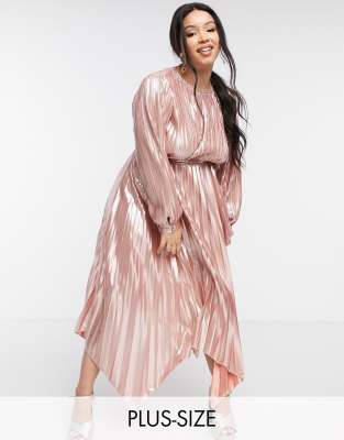 Forever U Curve Plissiertes Kleid In Rosegold Metallic Evesham Nj