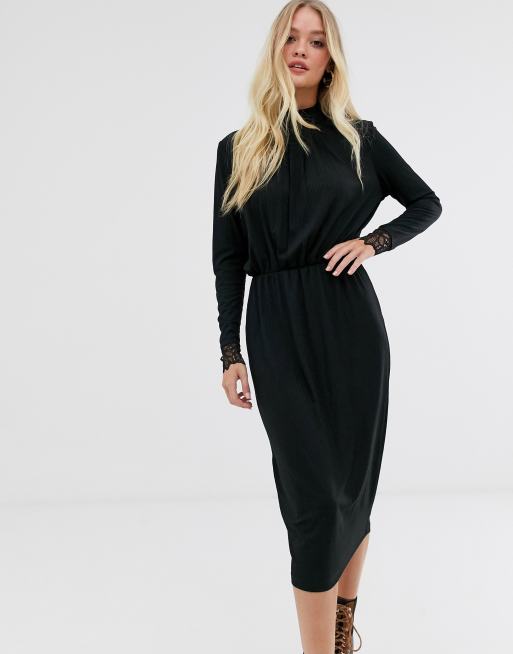 Y A S Hochgeschlossenes Plissiertes Kleid In Schwarz Mit Spitzenbundchen Evesham Nj