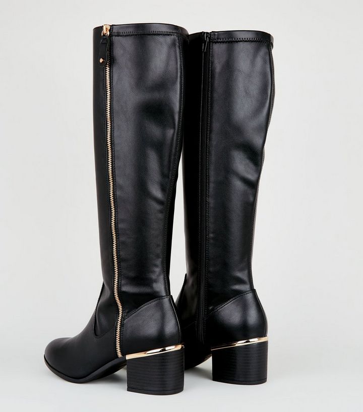 Schwarze Kniehohe Stiefel In Lederoptik In Weiter Passform New Look