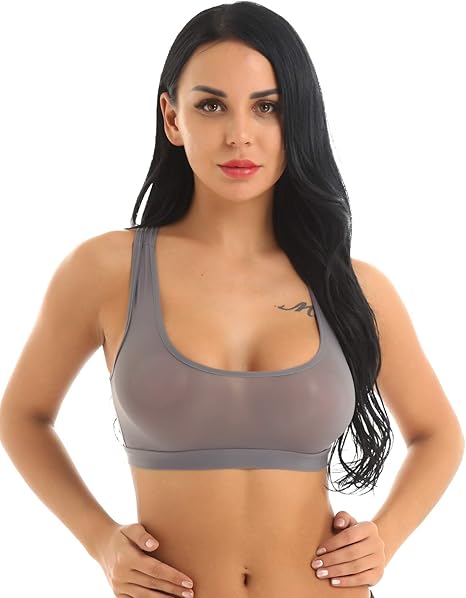 Chictry Damen Bustier Bralette Durchsichtiger Bh Bra Ohne Bugel Bauchfrei Tops T Shirt Dessous Yoga Fitness Sport Bh Unterhemd Grau Einheitsgrosse Amazon De Bekleidung