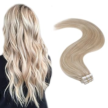Youngsee Strahnchen Blond Tape In Extensions Echthaar Menschliches Haar Ombre Aschblond Mit Blond Tape Haarverlangerung Tressen 50g Remy Tapes Extensions Echthaar Dickes Haare 60cm Amazon De Beauty