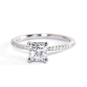 Princess Cut Natural Diamond Petite Pave Engagement Ring In Platinum Ebay