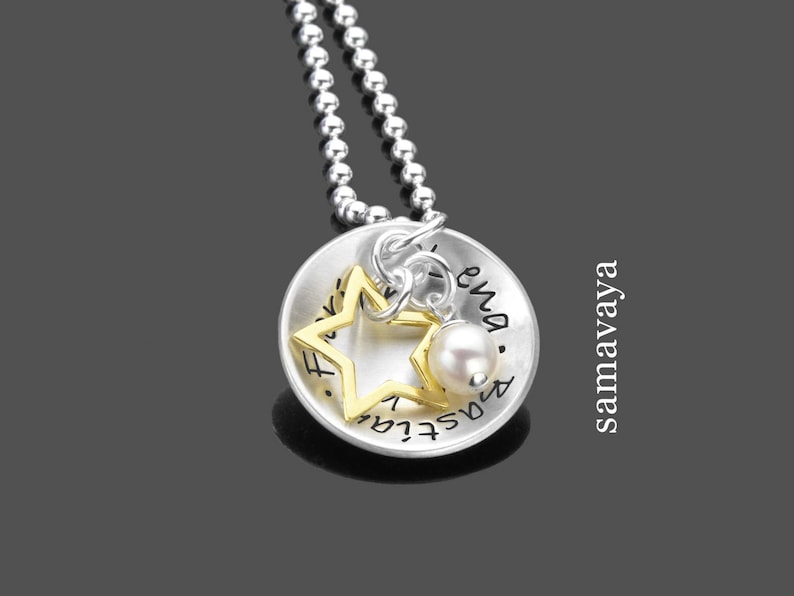 Familienkette Mit Namensgravur Our Stars 925 Silber Kette Mit Kindernamen Gravur Handmade Produkte Halsketten Mit Anhanger