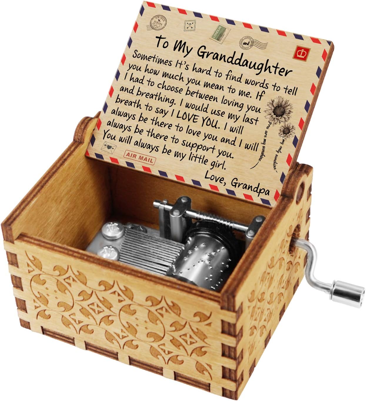Amazon Com Kenon Engraved Envelope Vintage Music Box Your Are My Sunshine Music Personalizable Gift For Granddaughter For Granddaughter From Grandpa Home Kitchen
