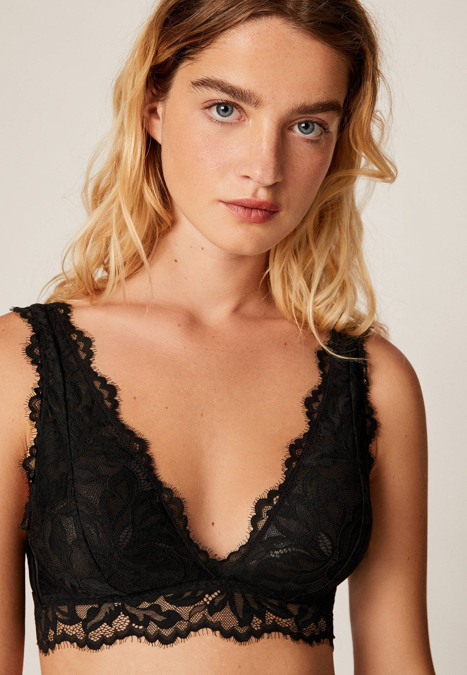 Oysho Mit Floraler Spitze Triangel Bh Black Schwarz Zalando De