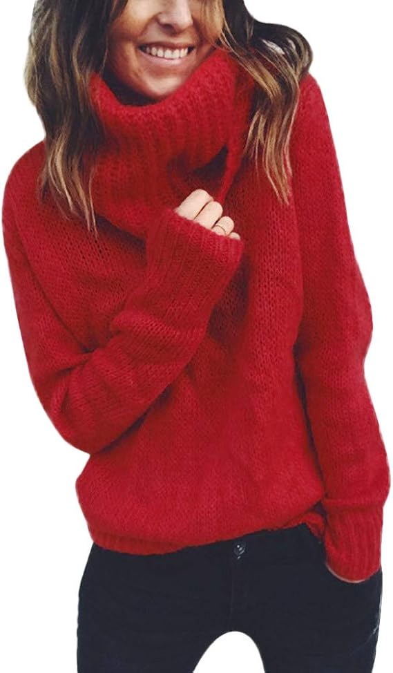 Amuster Damen Strickpullover Sweater Rollkragenpullover Jumper Strickpulli Oversize Frauen Solid Langarm Rollkragenpullover Strickpullover Jumper Pullover Top Bluse Amazon De Uhren
