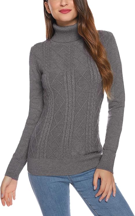 Aibrou Damen Elegant Pullover Strickwaren Rollkragenpullover Hals Langarm Ribbed Strick Pullover Tops Amazon De Bekleidung