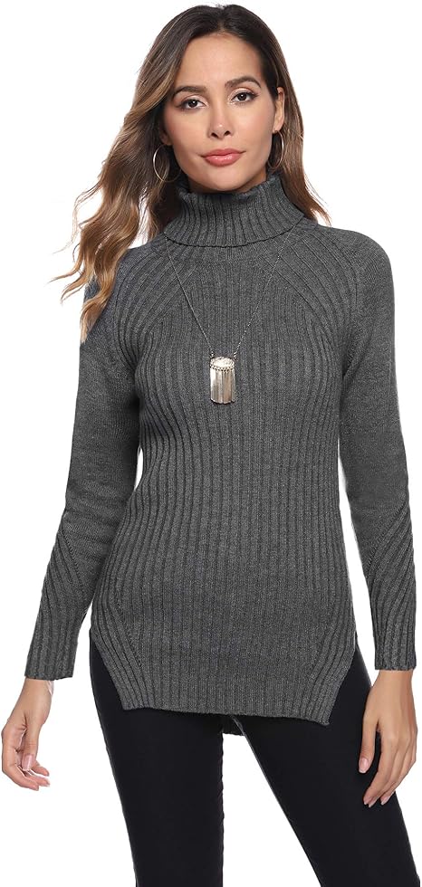 Abollria Damen Rollkragenpullover Lang Strickpullover Elegant Rippstrick Pulli Mit Schlitz Weich Warm Langarm Rolli Fur Winter Amazon De Bekleidung