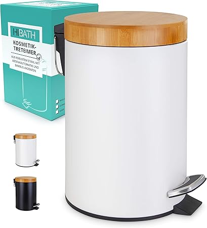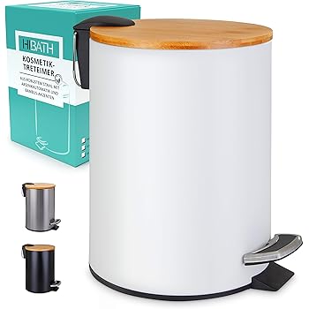 Hibath 3 Liter Kosmetikeimer Mit Bambusdeckel Badezimmer Mulleimer Mit Softclose Absenkautomatik Hochwertiger Badmulleimer Bad Mulleimer Abfalleimer Treteimer Wc Eimer Weiss Amazon De Kuche Haushalt