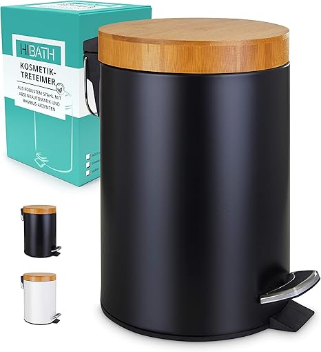 Hibath 3 Liter Kosmetikeimer Mit Bambusdeckel Badezimmer Mulleimer Mit Softclose Absenkautomatik Hochwertiger Badmulleimer Bad Mulleimer Abfalleimer Treteimer Wc Eimer Schwarz Amazon De Kuche Haushalt
