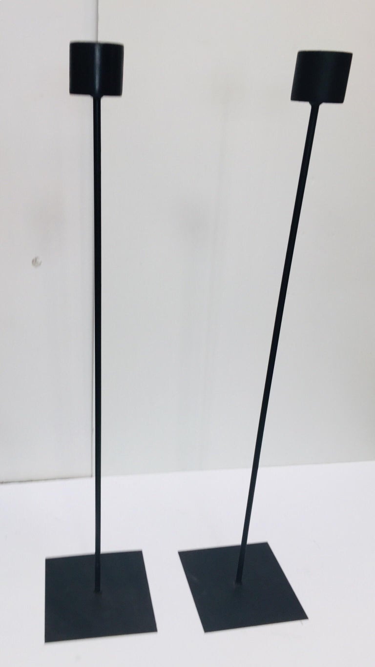 Set Of Two Large Contemporary Minimalist Black Metal Floor Candleholders At 1stdibs