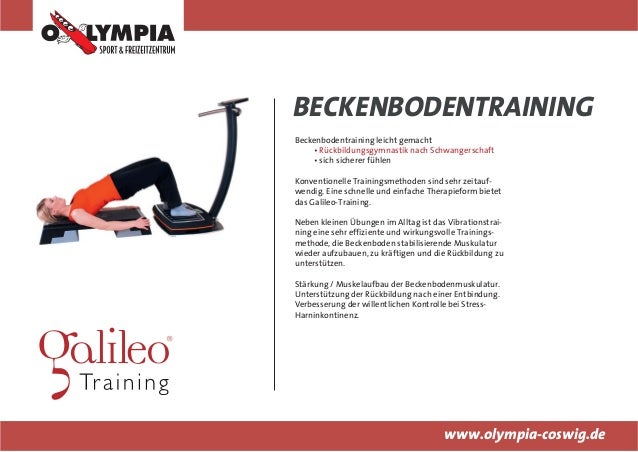 Die hier vorgestellten Übungen dienen zur Kräftigung der Muskulatur und Stärkung des Bindegewebes, zur Durchblutungsförderung und Hautbildverbesserung Lassen Sie sich bei regelmäßiger Anwendung von den schnellen Trainingserfolgen und positiven Effekten überraschen Besuchen Sie uns im Internet unter wwwgalileotrainingcom.