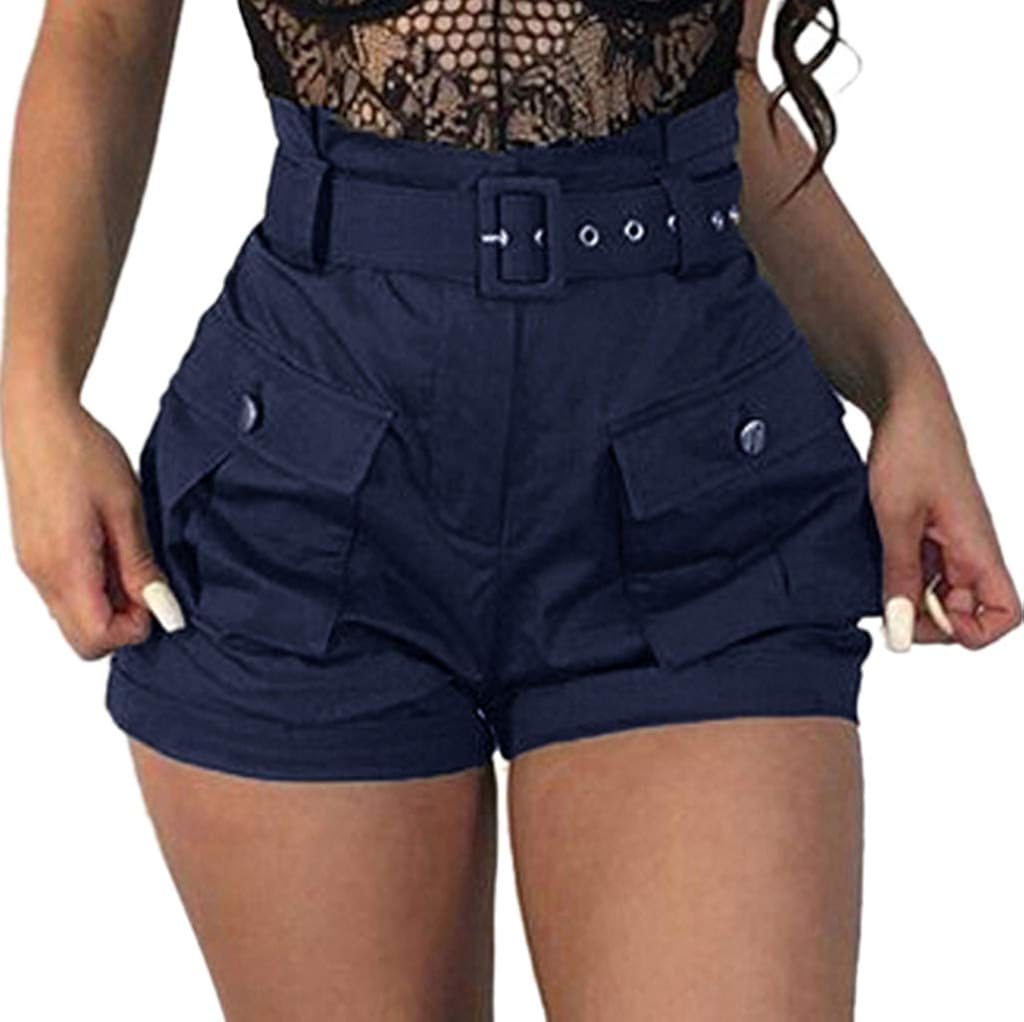 Shorts Damen Overalls Sommershorts High Waist Loose Hosen Weitem Bein Freizeit Damenhosen Strandshorts Mode Hohe Taille Kurz Hose Hotpants Mit Gurtel Streetwear Sportbekleidung