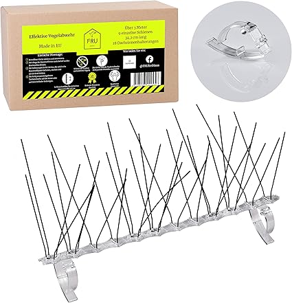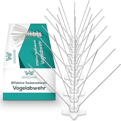 Tauben auf dem Dach, nistende Tauben auf dem Balkon, ASS ist Ihr kompetenter Partner in Sachen Taubenabwehr und hilft Ihnen gerne schnell und fachmännisch bei Ihrem Problem das Anbringen von sogenannten Taubenspikes oder Elektroimpulsabwehrsysteme Diese Arbeiten kann nur eine erfahrene Fachfirma durchführen. Spikesysteme und glatte Winkel, an denen die Tauben nicht landen können, sind das am häufigsten verwendete Mittel zur Taubenabwehr Sie sind billig, einfach zu montieren, effektiv und verletzen die Vögel nichtNachteile dieser Systeme sind die optische Beeinträchtigung des zu schützenden Objekts sowie die relativ geringe Fläche, welche durch die Installationen geschützt wird – Winkel. FRU Edelstahl Taubenabwehr mit Halterung an Dachrinnen 5 reihig 3 Meter Vogelschutz und 18 Stück Kunststoff Halterung Taubenschutz, Vogelabwehr für Dach, Balkon, Zaun, Fensterbank, Dachrinne Amazonde Garten.