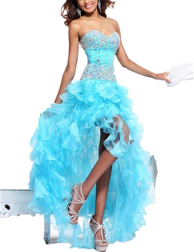 Yasiou Damen Kurz A Linie Blau Ballkleider Glitzer Tull Mini Herzausschnitt Abendkleider Amazon De Bekleidung