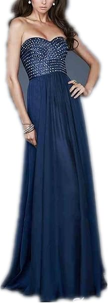 Yasiou Abendkleid Damen Elegant Lang A Linie Dunkelblau Glitzer Herzausschnitt Strass Abendkleider Mit Schleppe Amazon De Bekleidung