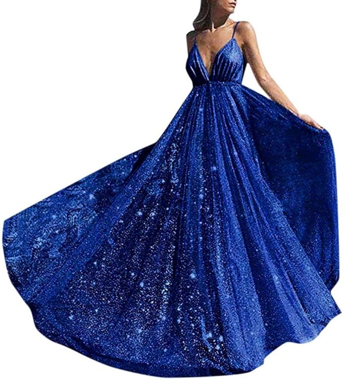 Vantexi Damen Glitzer Formale Abendkleid Ballkleid Chiffon Lange Kleider Amazon De Bekleidung