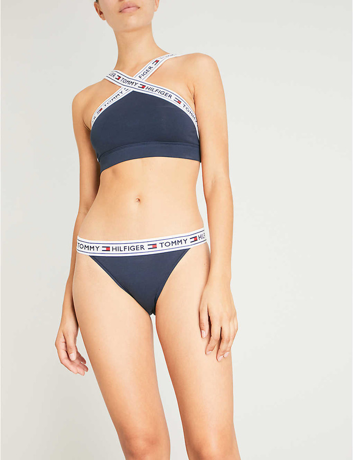 Amazon Com Tommy Hilfiger Bralette Longline Rpcheeky Side Tie Core Solid Logo Wb S Bikini Top Small Memphis Prt Clothing